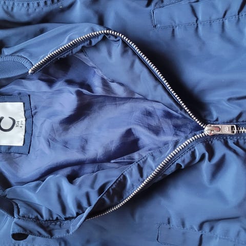 Myydään H&M:n pusakkatakki, jossa puuvillavuori. Takin koko 104cm. Päällikangas muistuttaa farkkua.