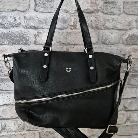 Gerry Weberin upea nahkalaukku, reilusti tilaa ja osioita. ulkopuolelta en löydä käytön jälkiä. Sisäosan vuoren yläosa on jostain syystä värjäytynyt beessiksi, mutta sehän ei näy käytössä. kahvan pituus 61 cm. 30 x 45 x 10,5 cm
