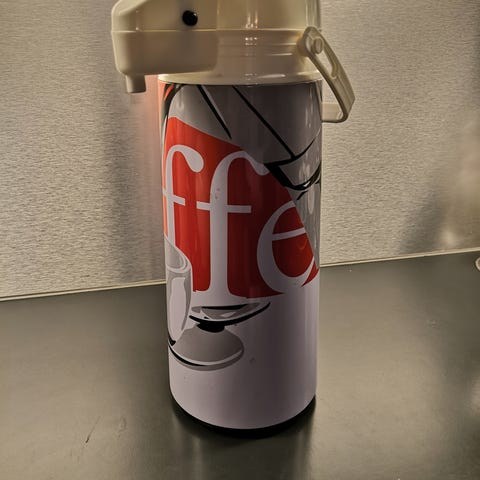 Teräksinen pumppupullo, korkeus 16cm, pohjan halkaisija lähes 9cm. Hinta noutaen 3€ noutaen.