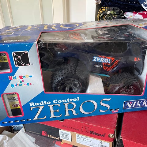 Ohjaimen taajuus 27 MHz. Toimii 9V paristolla. Paristotilan takakansi puuttuu. Ei haittaa toimintaa.