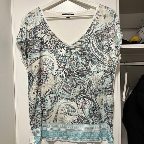 Kaunis läpikuultava paita, jossa helmi- ja paljettikirjailu. Merkki Premoda.