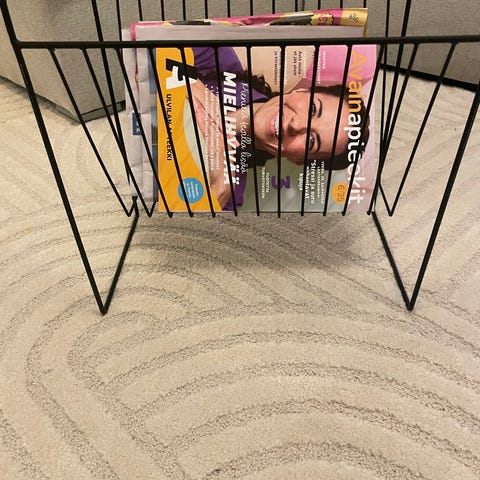 Askosta ostettu puinen lehtiteline lattialle.