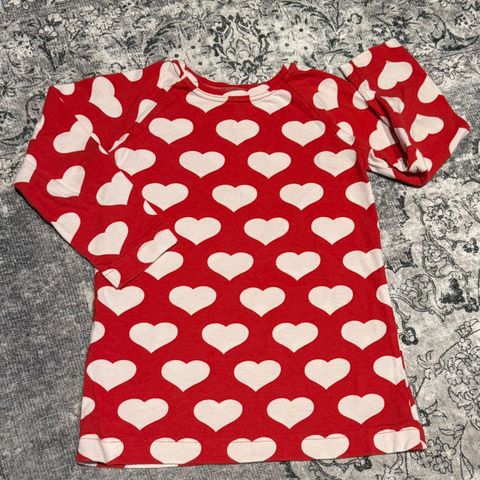 Myydään pitkähihainen, taskullinen tunika frilloilla Noshin vanhemman tuotannon kankaalla koossa 104cm.