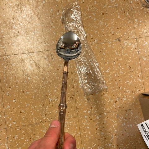 41cm x 10 cm vanha kupari-keittiöväline. Messinkikahva(29cm).