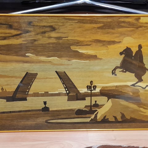 ” Komissaari ” taulu 1918 ajan Pietarista. Neuvostoliiton museo tausta…harvinainen.. Myöskin paljon muutakin….tauluja ja vanhaa vintagea ! Eri hintaista ! Livenä näkee kaikki ! Myöskin Ottomaanien miniatyyri tauluja kaksi erilaista, signeerauksilla ! Ym. Ja kaksi savilautastaulua…vanha Suomalainen, idyllinen savusaunan lämmitys ja toinen on Unkarilainen…Myöskin hiilipiirros…..ja puulle tehtyjä naivistisia lasten tauluja…ym. ym. Myöskin jonkin verran tauluja ! Palmu ym. Ja Carl Fagerlundin seinävalaisimet, pari….on sitten Harvinaisempaa Herkkua ! Myöskin kelloja… esim. Harvinaisempi Omega Seamaster Pre Bond, Mercedes viisareilla, automaatti ! ym.