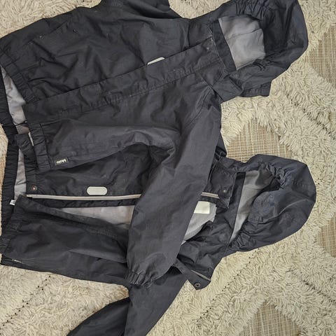 Molo Waiton takki ja Waits housut. Tuulipuku/tuuliasu. Koko 98/104. Paljon käytetty, on käytönjälkiä, esim. reikiä, näkyy kuvissa.