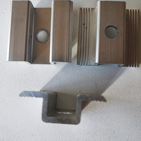 Hakusanat: aurinkopaneeli, asennuskisko, kiinnike, aurinkopaneelin kiinnitysprofiili.
