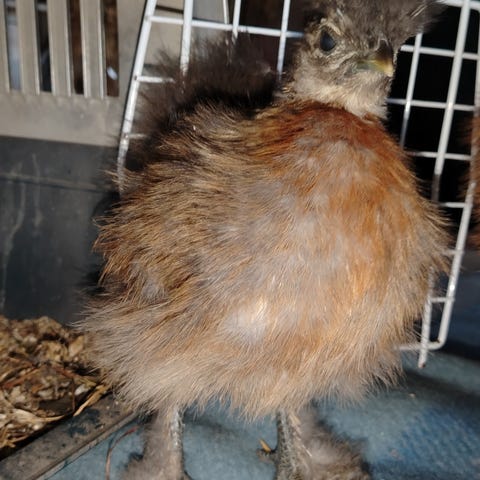 Silkkikanan munia; kanat partridge, chocolate, split black mottled, black frizzled. Kukot black mottled ja black mottled satin, toinen kukoista kantaa chocolate-väriä. Kaikista silkkitipuista tulee mottled-kantajia. Huomioi, että osa tipuista on sileäsulkaisia satineita.