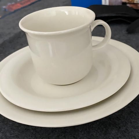 Priimakuntoisia arcitcan kahvikuppeja 19kpl, kupin aluslautasia 22kpl ja kakkulautasta halk 17cm 10kpl ja kermakko.