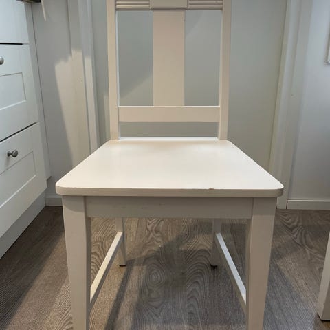 ☆ Valkoinen Iina-pinnatuolin selkänoja kallistuu hieman taaksepäin, mikä tekee siitä mukavan istua. (L42xS36xK87, Ist.K46)