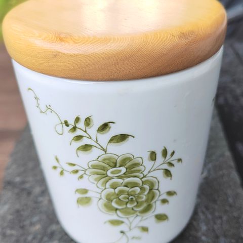 Keraaminen sydänpurkki, jossa korkkikansi.
