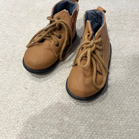 Nahkakengät koko 20/21. Merkki: Tutta. Oikea kenkä koko 21, vasen koko 20. Sisämitta oikea: n 14,3 cm. Sisämitta vasen: n 14,5 cm