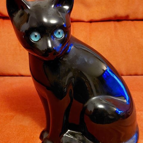 Nittsjön kissafiguurit, suunnittelija Thomas Hellström. Pohjassa leimat ja mallinumerot, vaalean korkeus 13 cm ja tumman pituus 13 cm. Pikkuviat näkyy viimeisessä kuvassa: tummalla hännän päästä puuttuu värilasitetta ja vaalealla etutassussa pieni iskemä ja lasitepuutos, muutoin täysin ehjät.