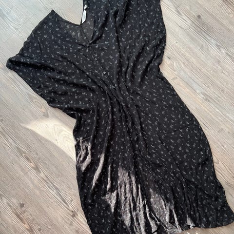 Musta silkkimekko, jonka kangas on hyvin laskeutuvaa pehmeää 100 % silkkiä.