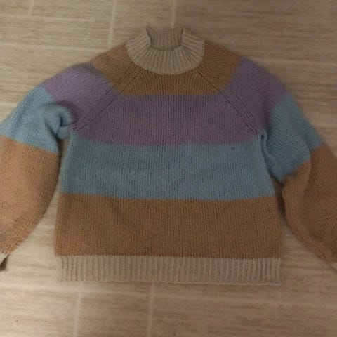 Puolipitkähihainen neule väreinä viininpunainen ja tummansininen. Koko M. Helman sivuilla solmittavat nauhat.