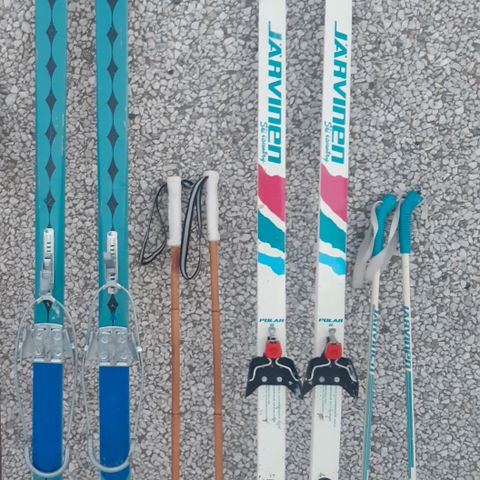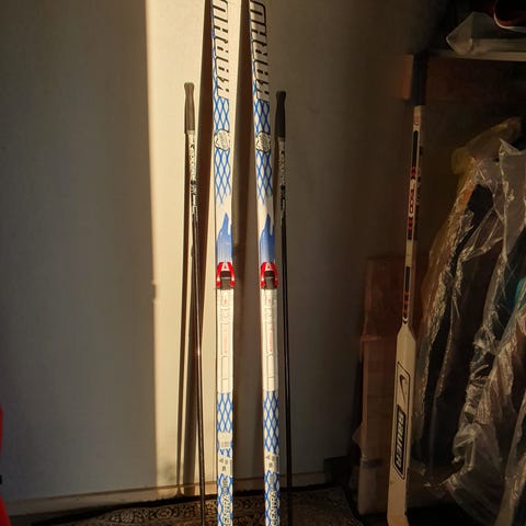 talvi tulee nyt 3 parin suksisetti,yksi pari sauvat,piikit puuttuu.Pituudet 190,196,205.Myydään koko setti yhdessä