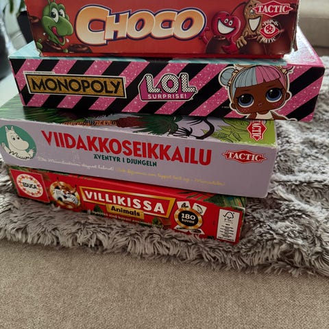 Kaikki pelit avattu, osaa kokeiltu mutta kaikissa kortit ja muut peleihin kuuluvat! Hinta on 5-10€/lautapeli...postitan kyllä, mutta postimaksut lisätään hintaan...
