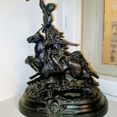 Signeerattu pienoismalli pronssia ja marmoria.