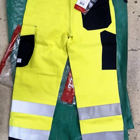 Tallin siivousta, palomiesten todella arvokkaat ammattimiehen palosuojahousut. käyttämättömät!! Kerran pihalla koklattu! Varastopölyä ehkä. Vastaavat kaupassa n, 300e!!