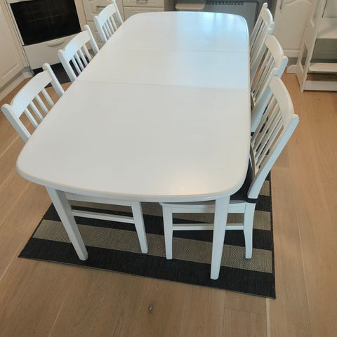 4 valkoista keinonahkatuolia, myydään koska ostetaan 6hengen ryhmä, todella siisti, istuttu tosi vähän tuoleissa, kuva pyydettäessä whatsuppiin