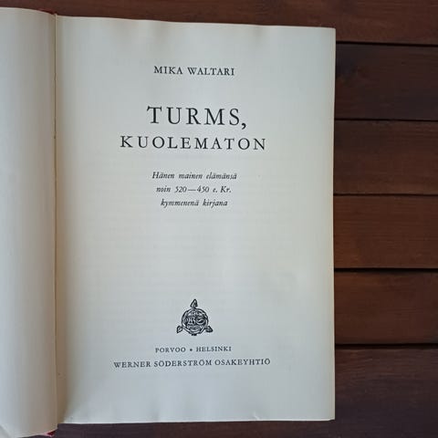 Myydään Mika Waltarin Turms kuolematon.