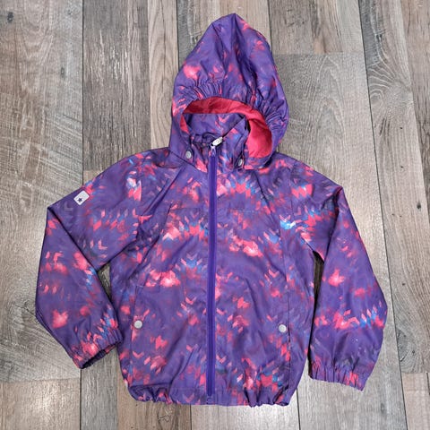 Tytön kuoritakki koossa 122. Hihassa kuluma, pientä tahra (en ole yrittänyt poista), muuten hyvässä kunnossa, ei reikiä. Hupun saa irroittaa. Sopii hyvin esim. päiväkotin käyttöön