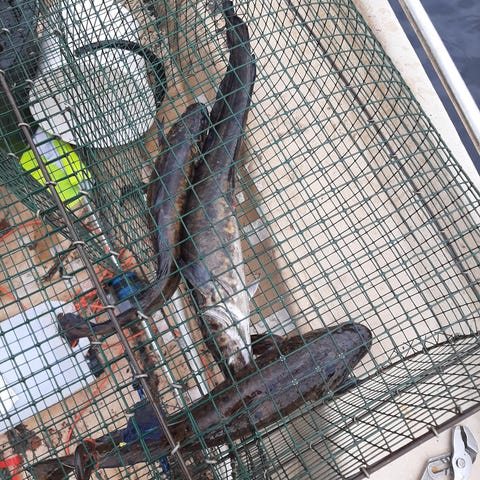 Katiskoita, mallia norppaturvallinen "Saimaa". Vihreää, muovitettua 19 mm silmäkoon ja 1,3 mm vahvuista teräsverkkoa. Mitat 100 x 65 x 38 cm. Lintuluukku. Kuljetus Joensuuhun onnistuu.