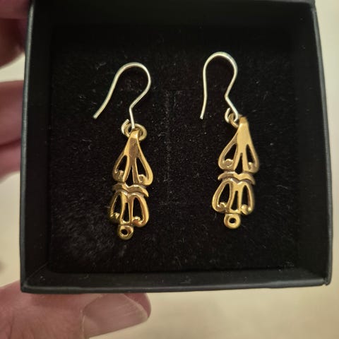 Kalevalan pronssiset Aurinkoleijona-korvakorut. Ostettu Kalevalan Pidetty-palvelusta, jossa käytetyt korut huolletaan korusepän käsissä uuden veroisiksi. Ei ole käytetty oston jälkeen.