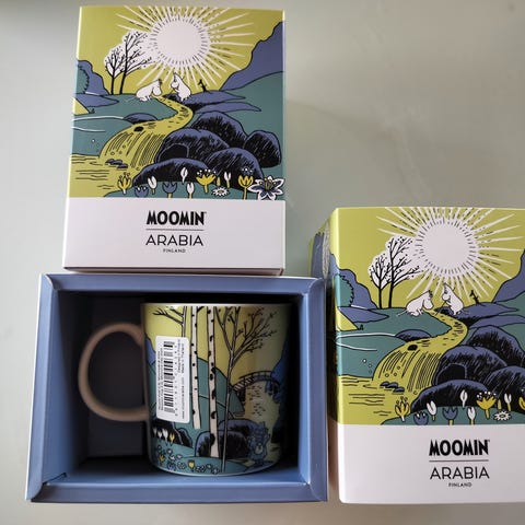 Vaihdetaan muumin päivä 2024 muki, vaihtuu ruskeaan nipsu mukiin, muumin päivä 2018 tai finnair matkalla mukiin.