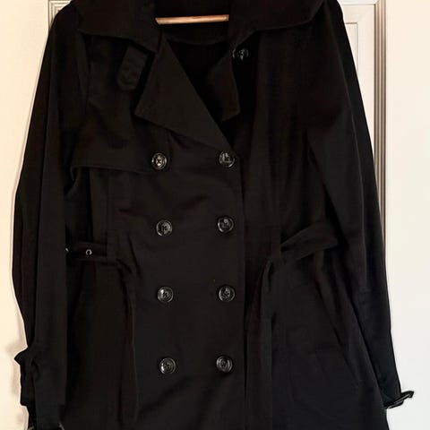Upea kellohelmainen trenssitakki kellohelmalla, kaksirivinapitus.