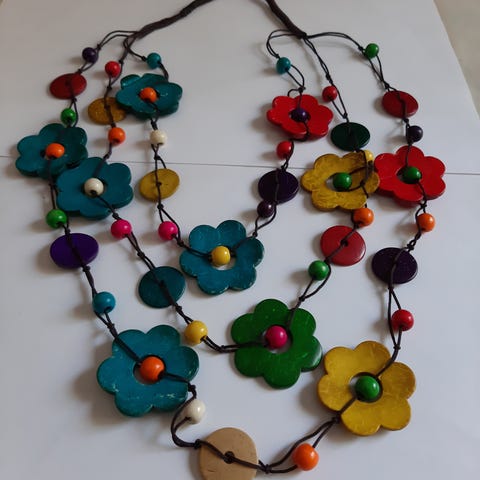 Kullanvärinen Kaulakoru Kukkia ja Helmiä ympärysmitta 70 cm + ketjua 4 cm etupuolella koru jatkuu 11 cm kukat ja helmet tasaisin välein kukan halkaisia 2 cm Kaulakoru on käyttämätön korupussi tulee mukaan kysy lisää + postitus yht 25 eur