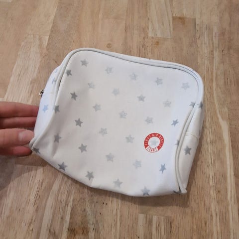 Tilava meikkipussi meikeille/kosmetiikalle. Kätevä ottaa matkalle mukaan. Muotoutuu pussukkamaisesti, ei ole tönkkö.