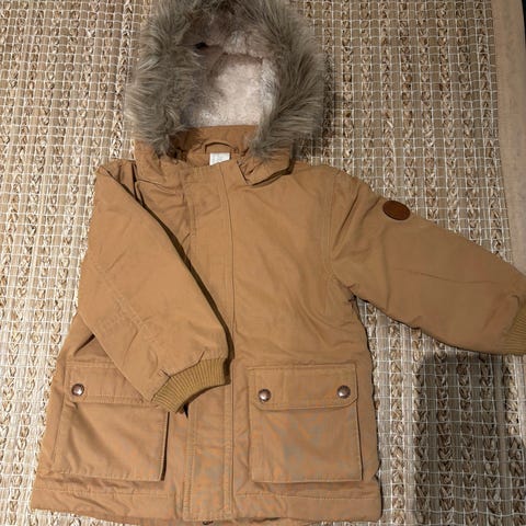 Lähes uudenveroinen karvahupullinen talvitakki.