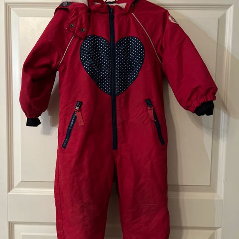 Racoonin kaunis karhu-haalari kokoa 92. Ei ole vadelman- eikä joulun punainen vaan jotain siltä väliltä, kaunis sävy, kuvissa kutakuinkin oikea. Sinänsä hyvä puku ja nätti mutta malli on hiukan hassu että alaosa on jotenkin tosi leveä suhteessa yläosaan, meillä on tätä samaa kuosia sinisenä eri koossa mutta ne ovat erimallisia, ”tavallisen mallisia”. Ihan lämmin mutta ei ole kaikista paksuin puku, meillä käytetty leudommilla säillä esim 0 - -10 asteessa. Myynnissä myös samaa kuosia sininen puku koossa 80 omana ilmoituksenaan.