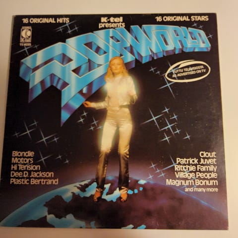 Word Top Hits 72 äänilevy. Tunnettuja pop-musiikin kappaleita. Levy on ehjä, näkyy heijastuksia.