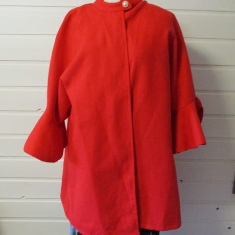 Uusi jakku on käytännöllinen asu matkoilla tai työelämässä. Lähikuvissa oikea punainen värisävy. Jakun mitat ovat kai -kai 54 cm, nis-hel 57 cm. Etuvetoketjutaskut.