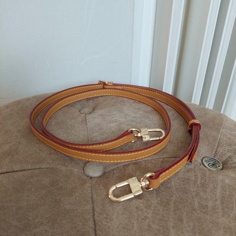Laukku, olkahihna. Keinonahkaa. Pituus 100 cm plus 15 jatkoa. Kullanväriset helat. Vuitton laukkuihin sopiva. Nouto tai toridiili.
