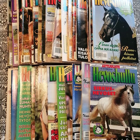 Paljon hevoskirjoja ja hevos lehtiä