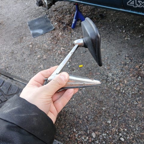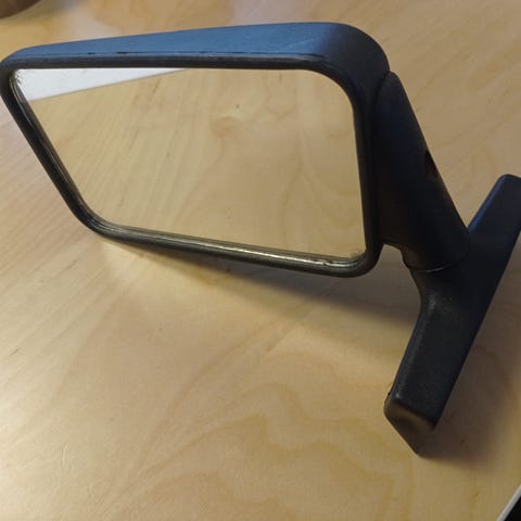 Sivupeili Auto Speed Copenhagen ,varsiosa ja kanta kupruilleet ,peilin osa ja itse peili hyvä ja kiiltävä. Saman valmistajan peili näkyy olevan Porsche 356ssa. Tämä voisi olla 1960 luvun Ford Taunuksen tai Volvo 144 vm 1970 ovipeili ,ostaja varmistaa itse onko alkuperäinen. Tästä voi tarjota käteistä ,vain nouto.