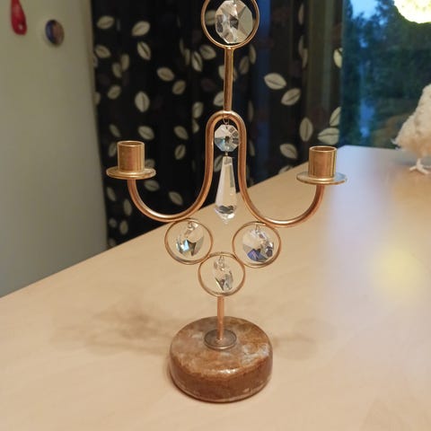 Turun Kristallin valmistama hieno kultainen kynttilänjalka. Kuin uusi. Korkeus 13 cm. Toimitus pk-seudulle mahdollinen.