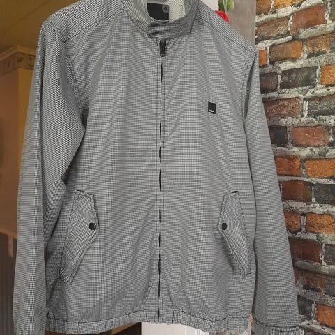 Ehjä ja pääosin siistissä kunnossa oleva kevättakki. Kauluksessa hieman tummentumaa, joka näkyy vain erittäin läheltä tarkastellessa.