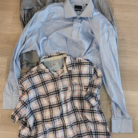 Kaksi kauluspaitaa. Ohut kangas, kuumaan ilmaan hyvät. Eli kesään tai etelään.
