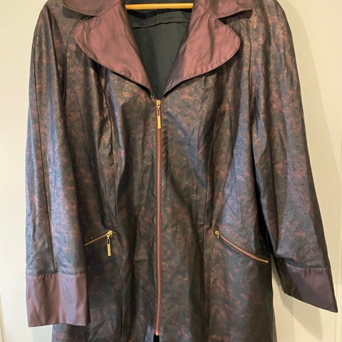 VALLEYGIRL, uudenveroinen käyttämätön upea musta tyköistuva kevyt PVC-takki ohuella polyestervuorilla. Kokomerkintä: 12, vastaa kokotaulukon mukaan 38, mutta mielestäni enemmänkin 36. Tosin ainakin avoinaisena sopii myös 38-kokoiselle! MITAT ALH! Vinohko vetoketjukiinnitys sekä vetoketjulliset taskut. Olkapäiden etupuolella pienet vinoruututikkaukset.