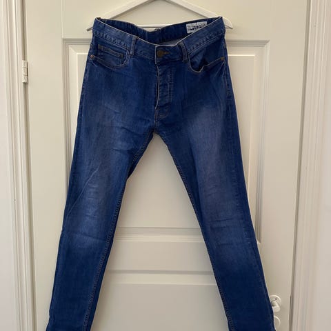 Toisessa polvessa reikä, liekö alkuperäinen ostettaessa ollut rikkinäinen on muotia, muotijuttu vaiko käytössä revenneet. Huomioitu hinnassa. Paikattavissa jos paikkaa haluaa ja kaipaa. Muualla ei juurikaan kulumaa tms. vikaa.