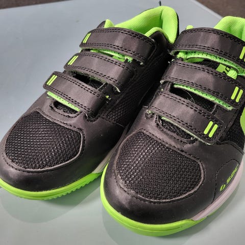 Hyväkuntoiset mustat kätevät tarralenkkarit. Sisällä mukavasti pehmustetta. Pohjat eivät lainkaan kuluneet, kuten kuvasta näkyy.