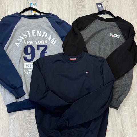 Kolmen värinen pusero.