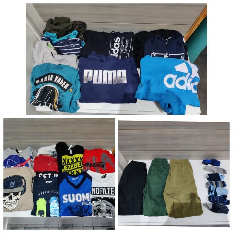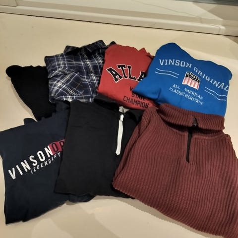 6kpl (2 housut,farkut ja colegehousut,villapaita,huppari, pitkähihainen paita ja T-paita)Yhdessä-35eur