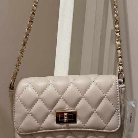 Beige laukku. Materiaali tekokuitua. Vetoketju-taskut sivuissa. Käyttämätön. Laukun suunympärys: 68cm. Olkahihnan pituus: 100cm. (Nouto tai postituskulut lisätään hintaan).