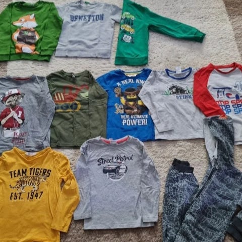 Myyn poikien vaatesetin, koko 116-122, hyvässä kunnossa. Vaatteet ovat Lindex, H&M ja Next -merkkisiä.