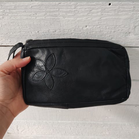 Kuvan vanha käärmeennahkainen clutch. Koko 20 x 12 cm.